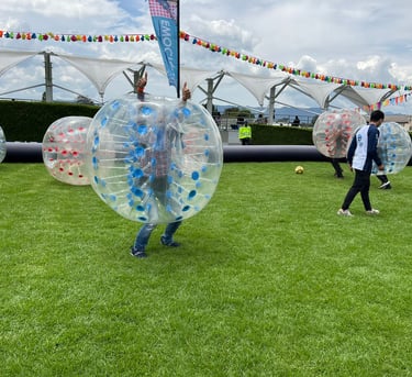 Ofrecemos alquiler de Bumper Ball inflable para eventos y fiestas, una atracción innovadora que garantiza momentos llenos de diversión. Estas burbujas inflables permiten jugar, rodar y chocar sin riesgo, siendo ideales para fiestas infantiles, eventos corporativos, ferias, colegios y celebraciones familiares. Es una actividad recreativa perfecta para disfrutar en grupo.
