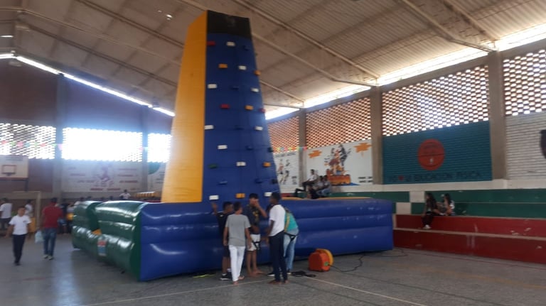Ofrecemos alquiler de muro de escalar inflable en Bogotá, una atracción recreativa ideal para eventos y celebraciones. Este inflable permite que niños, jóvenes y adultos pongan a prueba su habilidad y equilibrio mientras escalan de forma segura sobre una estructura inflable diseñada para la diversión. Es perfecto para fiestas infantiles, eventos corporativos, colegios, ferias y celebraciones familiares.