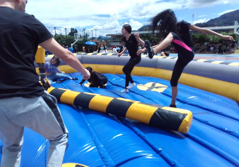 Nuestro servicio de alquiler de gladiadores inflables en Bogotá es ideal para quienes buscan una atracción interactiva y divertida para su evento. Este juego fomenta la competencia sana y el entretenimiento en grupo, siendo perfecto para fiestas infantiles, eventos corporativos, ferias, colegios y celebraciones especiales. Contamos con equipos seguros y de alta calidad para garantizar la diversión de todos los participantes.